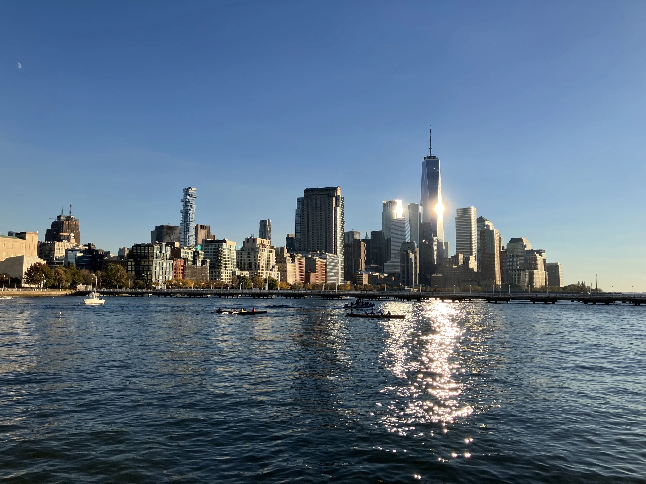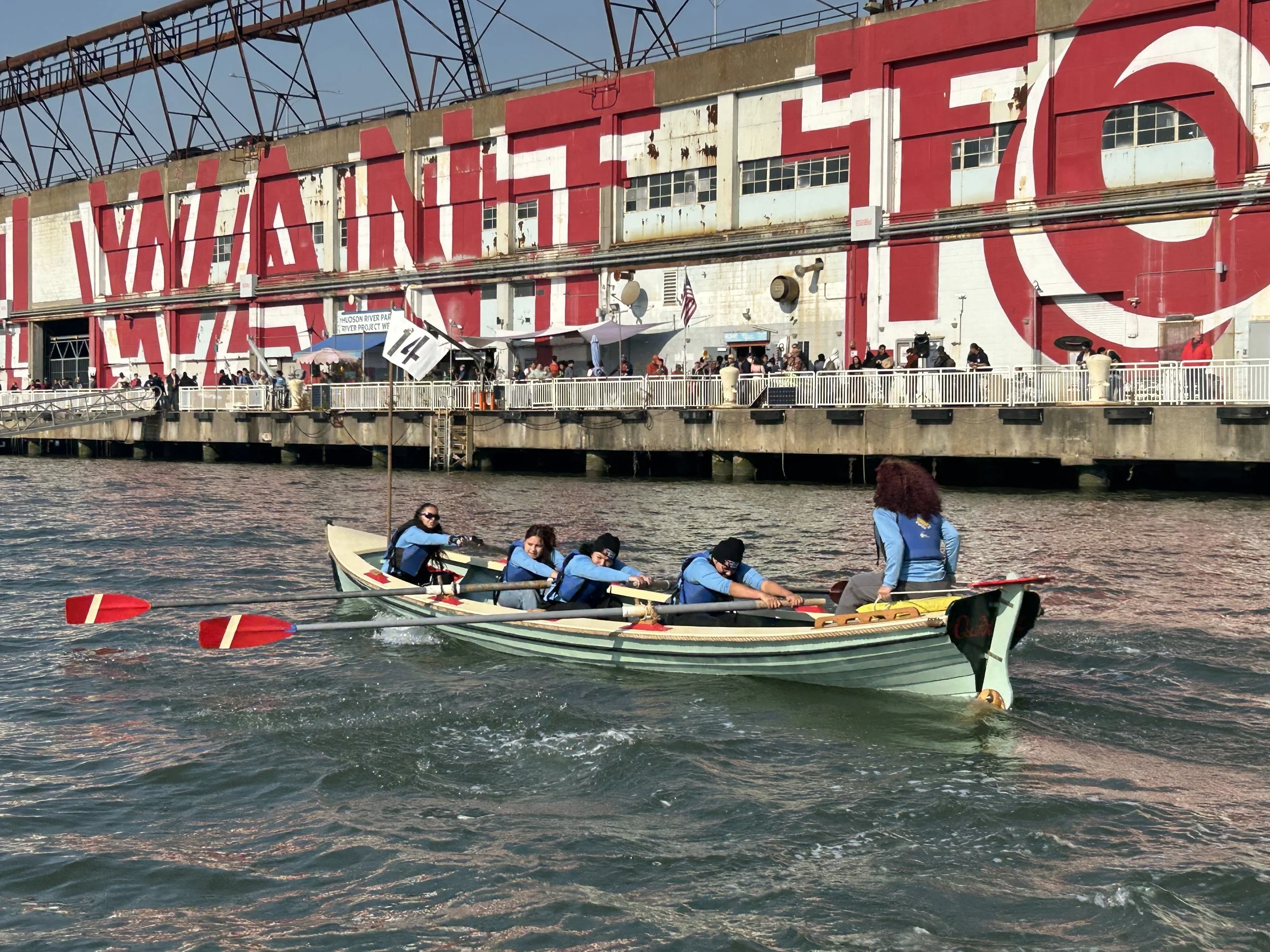 On Saturday, November 9, with smoke from New Jersey brush fires blanketing the Manhattan skies, fifteen high school rowing crews from Village Community Boathouse, New York Harbor School, Rocking the Boat from the Bronx, and from Connecticut Ledyard Rowin’ and Sound School, met for the 2024 edition of our annual Youth Race. After a breakfast of bagels, cream cheese, OJ, and coffee, the crews got a quick explanation of the races and we started ordering them into boats.